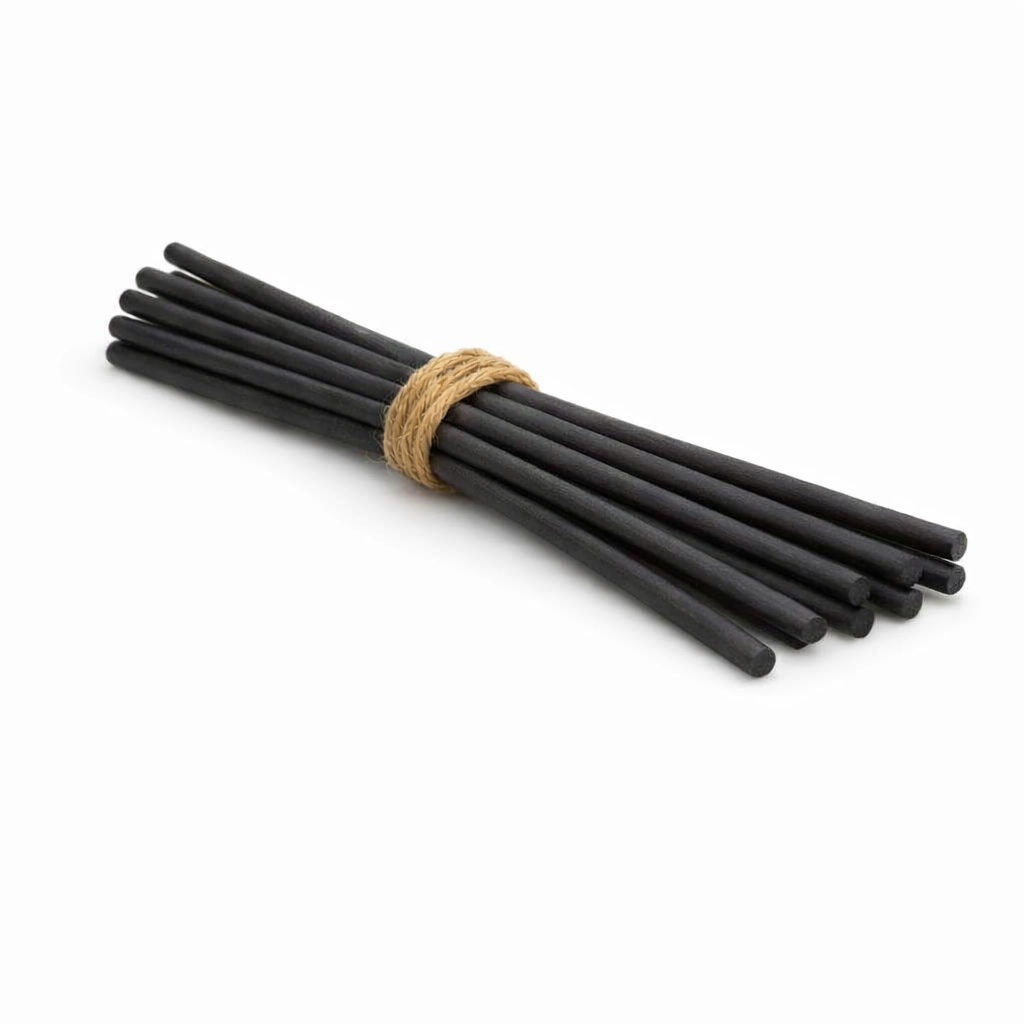 Czarne patyczki z włókna fiber do dyfuzorów zapachowych. Minimalistyczne i gotowe do użycia.